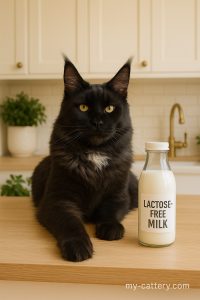 – Lactose has been removed, so the risk of gastrointestinal disorders (diarrhea, bloating) is reduced. However, Maine Coons may be sensitive to cow‘s milk proteins (casein), even without lactose.
